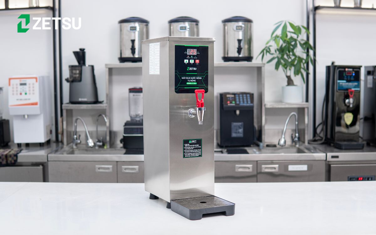Để pha trà đúng chuẩn, nhiệt độ nước đóng vai trò rất quan trọng. Máy đun nước nóng tự động Zetsu Z-30L là thiết bị giúp các quán trà sữa, cà phê luôn có sẵn nước nóng ở mức nhiệt độ phù hợp mà không cần mất thời gian canh chỉnh.