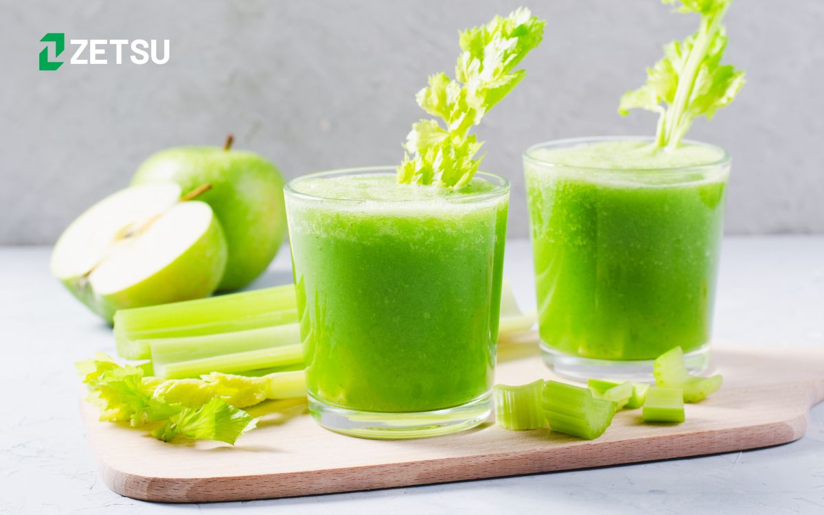 Cần tây là một trong những loại nguyên liệu cần tráng máy ngay sau khi ép để không lẫn mùi sang ly nước ép khác